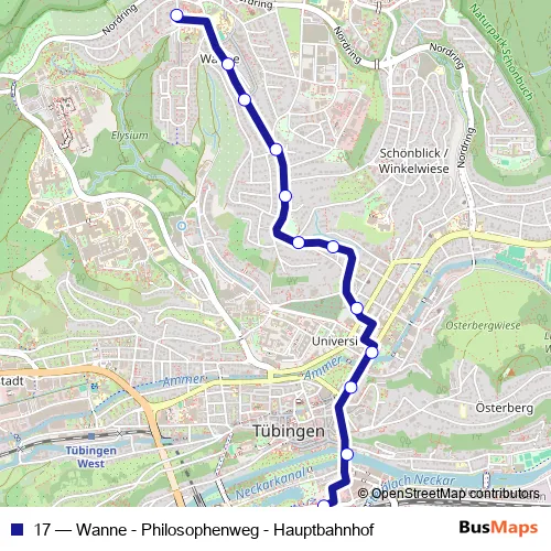 Tübingen Wanne Kunsthalle. 17 (Wanne - Philosophenweg - Hauptbahnhof) is operational during everyday.