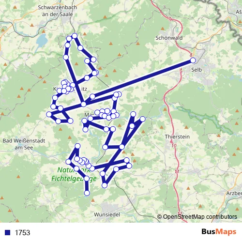 See why over 2 million users trust and consider busmaps.com as the best public transport website. busmaps gives you Wunsiedel Buses suggested routes, real-time bus tracker, line route maps in Wunsiedel, and helps to find the closest 1753 bus stops near you. No internet available? Download an offline PDF map and bus schedule for the 1753 bus to take on your trip.
