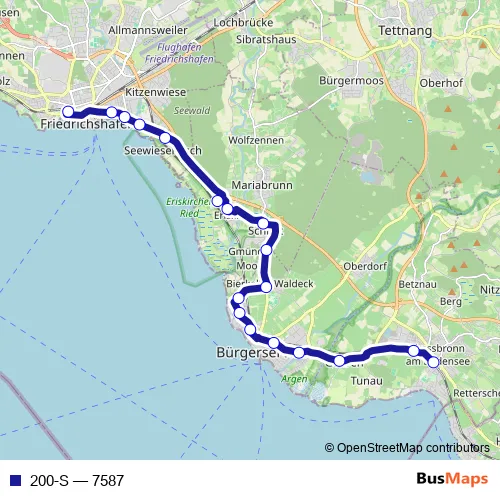 Friedrichstraße - Eckenerstraße - Seewiesenstraße - Lindauer Straße - Seestraße - Greuther Straße - Friedrichshafener Straße - Schützenweg - Mooser Weg - Rosenstraße - Friedhofstraße - Eisenbahnstraße - Lindauer Straße - Langenargener Straße - Argenstraße - Nonnenbacher Weg
