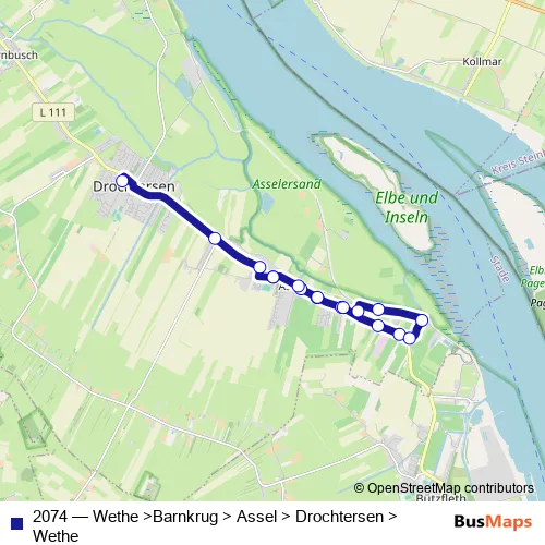 Bus 2074 - Wethe >Barnkrug > Assel > Drochtersen >Wethe Schedule in Hansestadt Stade