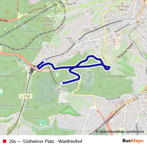 Bus 20e - Südheimer Platz - Waldfriedhof Schedule in Stuttgart