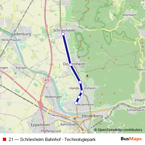 Bus 21 - Schriesheim Bahnhof - Technologiepark: Full Schedule in Heidelberg