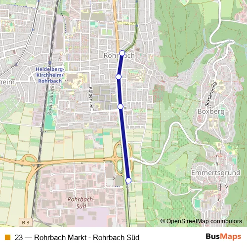 See why over 2 million users trust and consider busmaps.com as the best public transport website. busmaps gives you Heidelberg Buses suggested routes, real-time bus tracker, line route maps in Heidelberg, and helps to find the closest 23 bus stops near you. No internet available? Download an offline PDF map and bus schedule for the 23 bus to take on your trip.