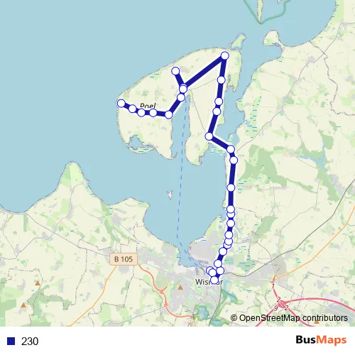 See why over 2 million users trust and consider busmaps.com as the best public transport website. busmaps gives you Wismar Buses suggested routes, real-time bus tracker, line route maps in Wismar, and helps to find the closest 230 bus stops near you. No internet available? Download an offline PDF map and bus schedule for the 230 bus to take on your trip.