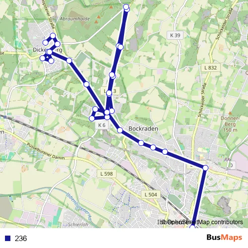 The first stop of the 236 bus route is Dickenberg, Barbaraschule and the last stop is Ibbenbüren, Busbahnhof. 236 is operational during on weekdays.