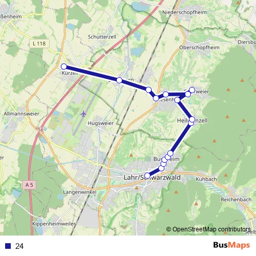 See why over 2 million users trust and consider busmaps.com as the best public transport website. busmaps gives you Lahr Buses suggested routes, real-time bus tracker, line route maps in Lahr, and helps to find the closest 24 bus stops near you. No internet available? Download an offline PDF map and bus schedule for the 24 bus to take on your trip.