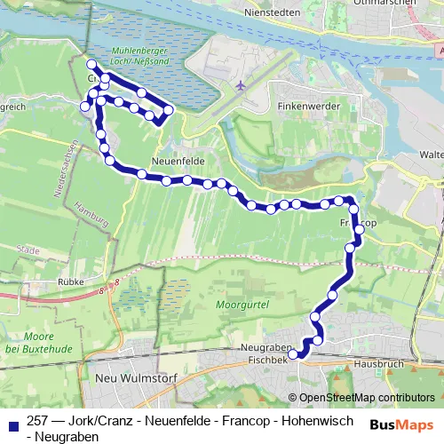 Click here to view the nearest 257 - Jork/Cranz - Neuenfelde - Francop - Hohenwisch - Neugraben bus stop.