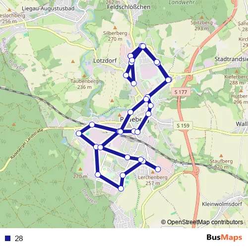 See why over 2 million users trust and consider busmaps.com as the best public transport website. busmaps gives you Dresden Buses suggested routes, real-time bus tracker, line route maps in Dresden, and helps to find the closest 28 bus stops near you. No internet available? Download an offline PDF map and bus schedule for the 28 bus to take on your trip.