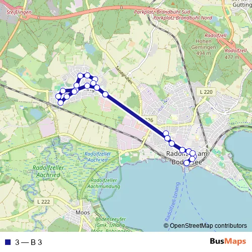 Teggingerstraße - Schützenstraße - Schwertstraße - Böhringer Straße - Bodenseestraße - Freiheitstraße - Rickelshausener Straße - Sankt-Nikolaus-Straße - Freiherr-vom-Stein-Straße - Fritz-von-Engelberg-Straße - Böhringer Straße - Schwertstraße - Schützenstraße - Teggingerstraße - Fürstenbergstraße