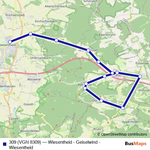 See why over 2 million users trust and consider busmaps.com as the best public transport website. busmaps gives you Geiselwind Buses suggested routes, real-time bus tracker, line route maps in Geiselwind, and helps to find the closest 309 (VGN 8309) bus stops near you. No internet available? Download an offline PDF map and bus schedule for the 309 (VGN 8309) bus to take on your trip.