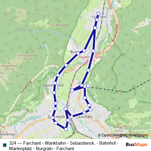 Bus 324 - Farchant - Wankbahn - Sebastiansk. - Bahnhof - Marienplatz - Burgrain - Farchant Schedule in Garmisch-Partenkirchen