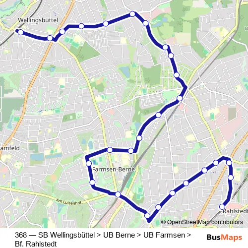 Bus 368 - SB Wellingsbüttel > UB Berne > UB Farmsen > Bf. Rahlstedt in Hamburg: Stops & Timetable