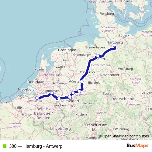 Bus 380 - Hamburg - Antwerp in Duesseldorf: Stops & Timetable