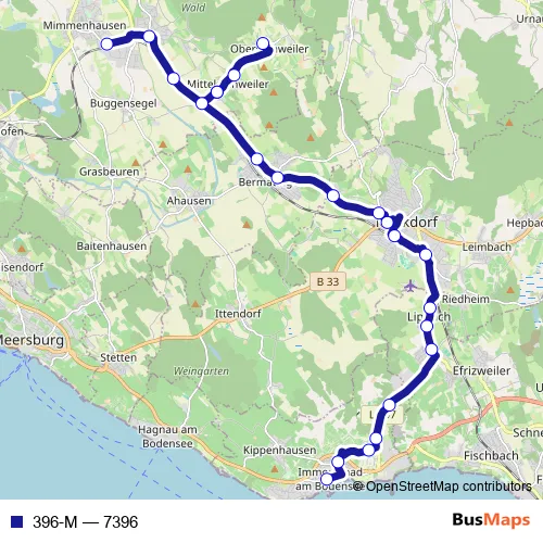 See why over 2 million users trust and consider busmaps.com as the best public transport website. busmaps gives you Immenstaad am Bodensee Buses suggested routes, real-time bus tracker, line route maps in Immenstaad am Bodensee, and helps to find the closest 396-M bus stops near you. No internet available? Download an offline PDF map and bus schedule for the 396-M bus to take on your trip.