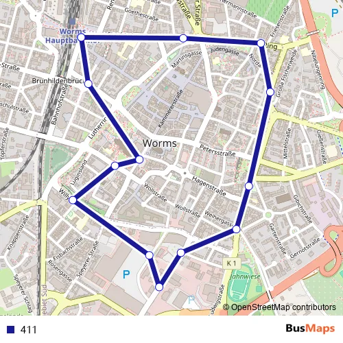 See why over 2 million users trust and consider busmaps.com as the best public transport website. busmaps gives you Worms Buses suggested routes, real-time bus tracker, line route maps in Worms, and helps to find the closest 411 bus stops near you. No internet available? Download an offline PDF map and bus schedule for the 411 bus to take on your trip.