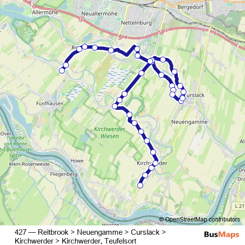Bus 427 - Reitbrook > Neuengamme > Curslack > Kirchwerder > Kirchwerder, Teufelsort: Full Schedule in Hamburg