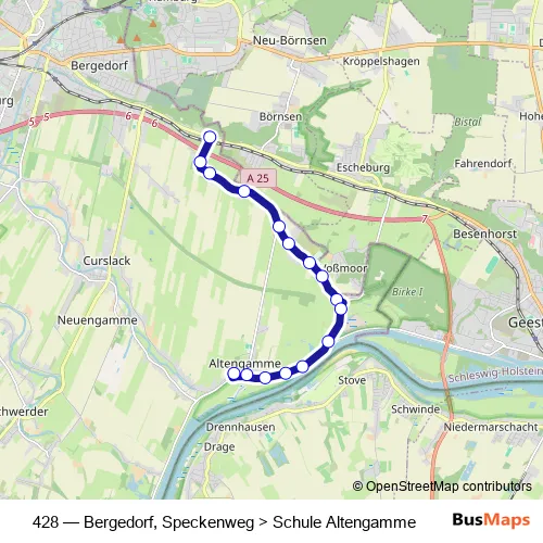 Click here to view the nearest 428 - Bergedorf, Speckenweg > Schule Altengamme bus stop.