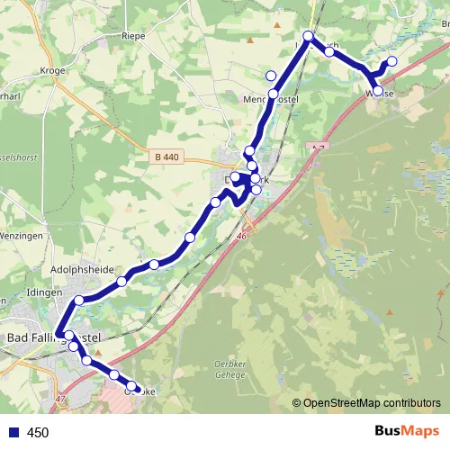 See why over 2 million users trust and consider busmaps.com as the best public transport website. busmaps gives you Bad Fallingbostel Buses suggested routes, real-time bus tracker, line route maps in Bad Fallingbostel, and helps to find the closest 450 bus stops near you. No internet available? Download an offline PDF map and bus schedule for the 450 bus to take on your trip.