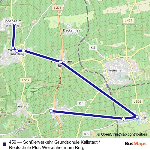 Bus 459 - Schülerverkehr Grundschule Kallstadt / Realschule Plus Weisenheim am Berg in Kleinkarlbach: Stops & Timetable