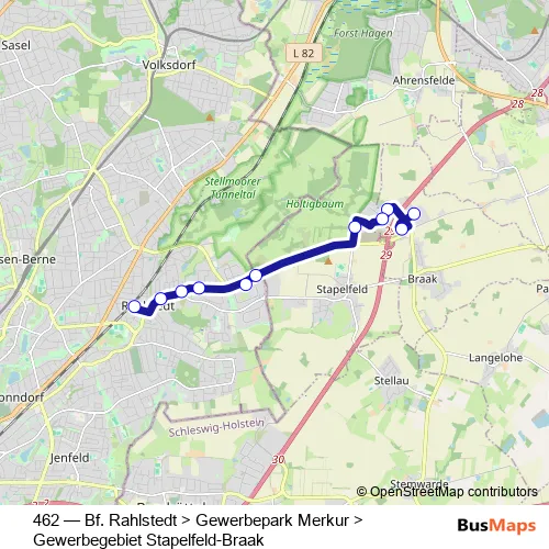 462 Bus - Bf. Rahlstedt > Gewerbepark Merkur > Gewerbegebiet Stapelfeld-Braak