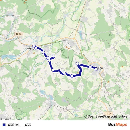 The first stop of the 466-M bus route is Mengen, Bahnhof and the last stop is Bad Saulgau, Bahnhof. 466-M (466) is operational during on weekdays.
