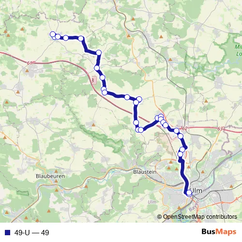 See why over 2 million users trust and consider busmaps.com as the best public transport website. busmaps gives you Ulm Buses suggested routes, real-time bus tracker, line route maps in Ulm, and helps to find the closest 49-U bus stops near you. No internet available? Download an offline PDF map and bus schedule for the 49-U bus to take on your trip.