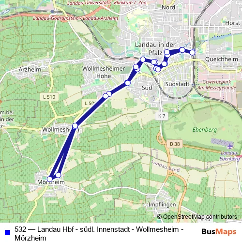 Click here to view the nearest 532 - Landau Hbf - südl. Innenstadt - Wollmesheim - Mörzheim bus stop.