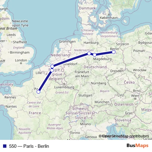 Bus 550 - Paris - Berlin: Full Schedule in Brussels