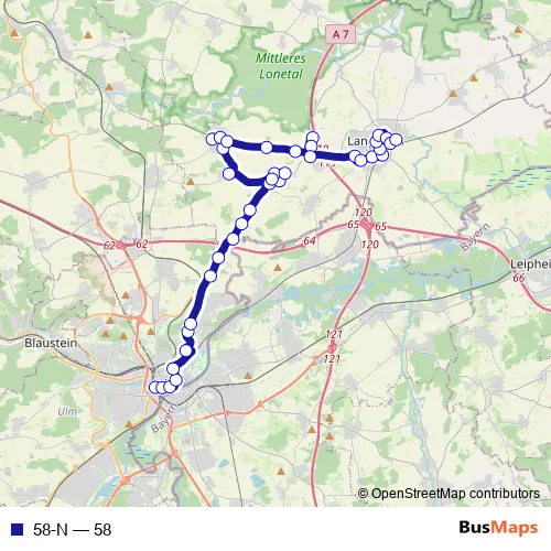 Bus 58-N - 58 in Ulm: Stops & Timetable
