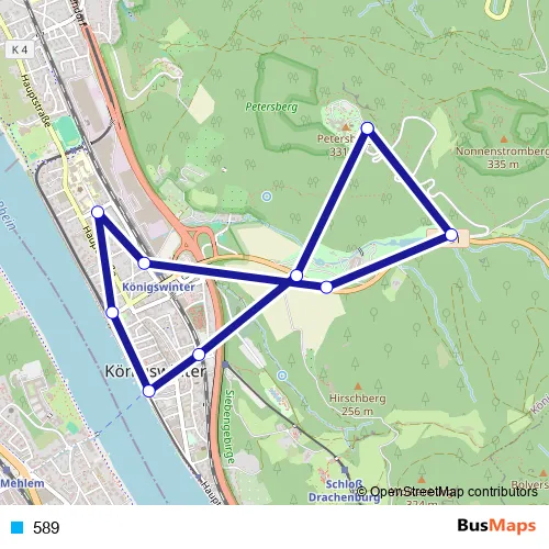 See why over 2 million users trust and consider busmaps.com as the best public transport website. busmaps gives you Koenigswinter Trams suggested routes, real-time bus tracker, line route maps in Koenigswinter, and helps to find the closest 589 tram stops near you. No internet available? Download an offline PDF map and bus schedule for the 589 tram to take on your trip.
