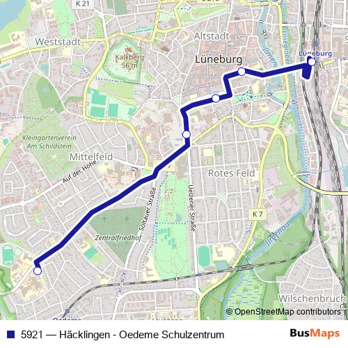 Bus 5921 - Häcklingen - Oedeme Schulzentrum in Lueneburg: Stops & Timetable