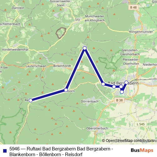 Click here to view the nearest 5946 - Ruftaxi Bad Bergzabern Bad Bergzabern - Blankenborn - Böllenborn - Reisdorf bus stop.