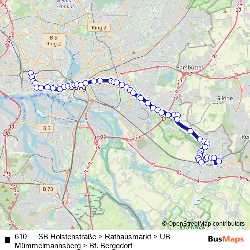 Bus 610 - SB Holstenstraße > Rathausmarkt > UB Mümmelmannsberg > Bf. Bergedorf: Full Schedule in Hamburg
