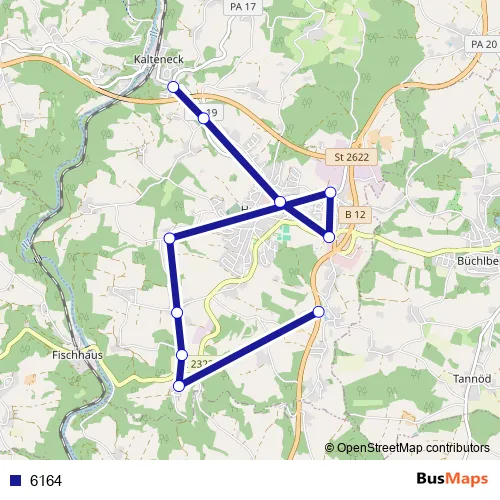 The first stop of the 6164 bus route is Hutthurm, Bayerwaldstraße and the last stop is Kleeham. 6164 is operational during on weekdays.