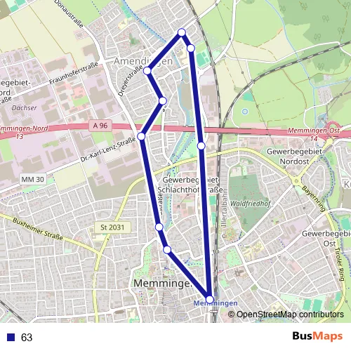 Bahnhofstraße - In der Neuen Welt - Waimerstraße - Grünenfurter Straße - Obere Straße - Donaustraße - Am Luginsland - Bahnhofstraße