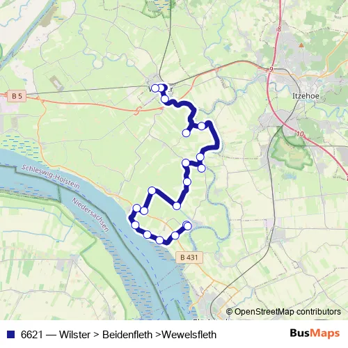 Bus 6621 - Wilster > Beidenfleth >Wewelsfleth: Full Schedule in Itzehoe