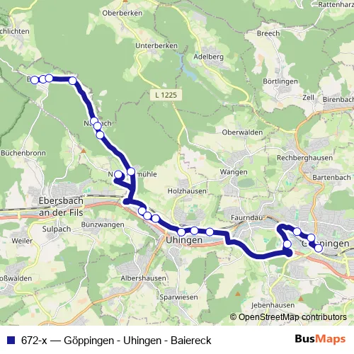 Click here to view the nearest 672-x - Göppingen - Uhingen - Baiereck bus stop.