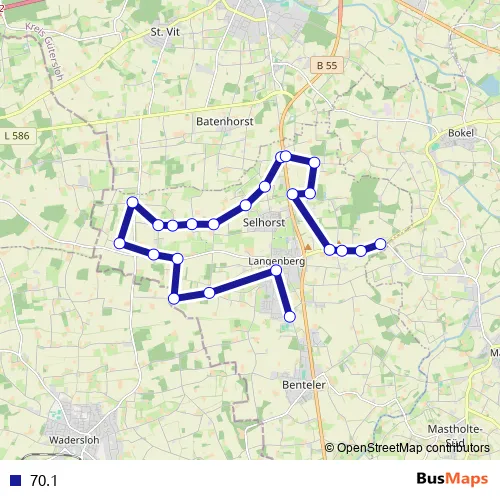 The first stop of the 70.1 bus route is Langenberg (Kr GT), Konrad-Zuse-Schule and the last stop is Langenberg (Kr GT), Rietberger Str. 199. 70.1 is operational during on weekdays.