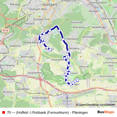 Bus 70 - (Hoffeld -) Ruhbank (Fernsehturm) - Plieningen: Full Schedule in Stuttgart