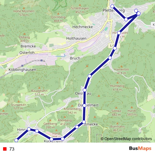 The first stop of the 73 bus route is Plett., Am Untertor and the last stop is