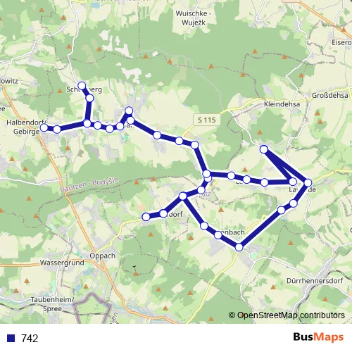 Cunewalde Mittelweg. 742 is operational during on weekdays.