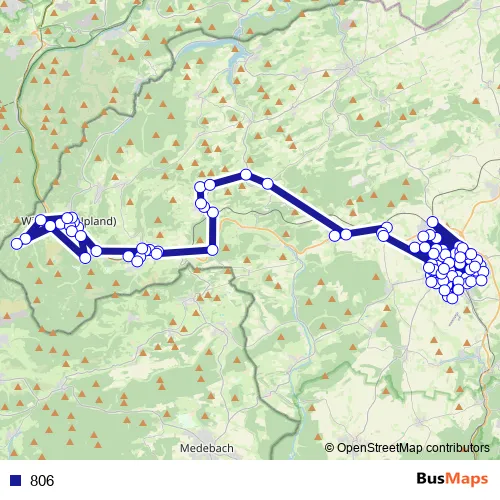 The first stop of the 806 bus route is Willingen, Alte Post and the last stop is Korbach Ziegelfeld. 806 is operational during everyday.