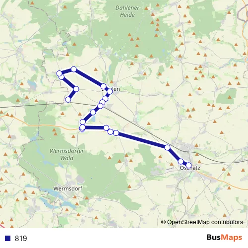 The first stop of the 819 bus route is Radegast (Dahlen) and the last stop is Oschatz, Busbahnhof. 819 is operational during on weekdays.