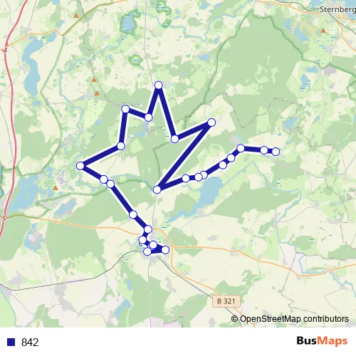 The first stop of the 842 bus route is Demen Wendeplatz and the last stop is Crivitz Bahnhof. 842 is operational during everyday.