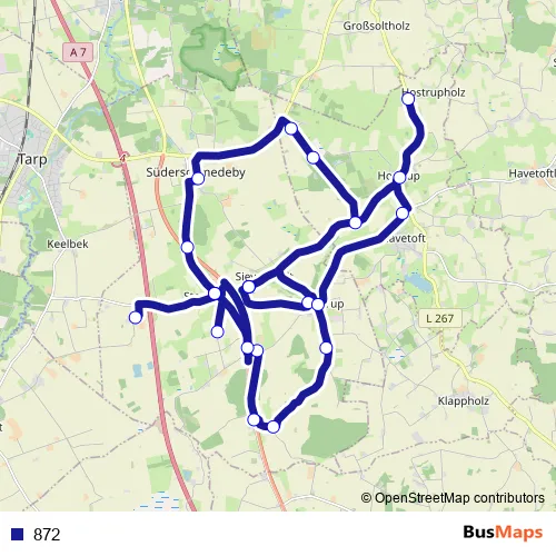 The first stop of the 872 bus route is Sieverstedt Schule and the last stop is Sieverstedt Schule. 872 is operational during on weekdays.