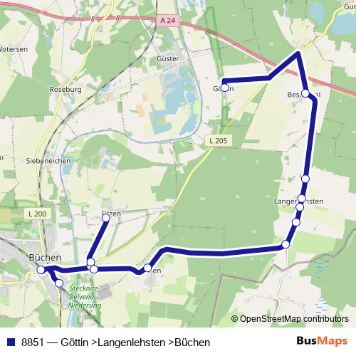 Click here to view the nearest 8851 - Göttin >Langenlehsten >Büchen bus stop.