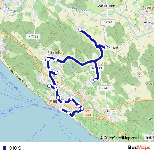 Grasbeurer Straße - Ortsstraße - Baitenhauser Straße - Meersburger Straße - Höhenweg - Daisendorfer Straße - Dr.-Zimmermann-Straße - Daisendorfer Straße - Mesmerstraße - Kronenstraße - Töbelestraße - Uferpromenade