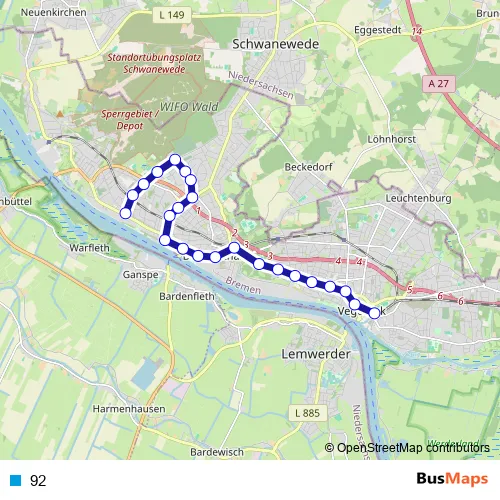 See why over 2 million users trust and consider busmaps.com as the best public transport website. busmaps gives you Bremen Buses suggested routes, real-time bus tracker, line route maps in Bremen, and helps to find the closest 92 bus stops near you. No internet available? Download an offline PDF map and bus schedule for the 92 bus to take on your trip.