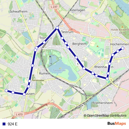 See why over 2 million users trust and consider busmaps.com as the best public transport website. busmaps gives you Duisburg Buses suggested routes, real-time bus tracker, line route maps in Duisburg, and helps to find the closest 924 E bus stops near you. No internet available? Download an offline PDF map and bus schedule for the 924 E bus to take on your trip.