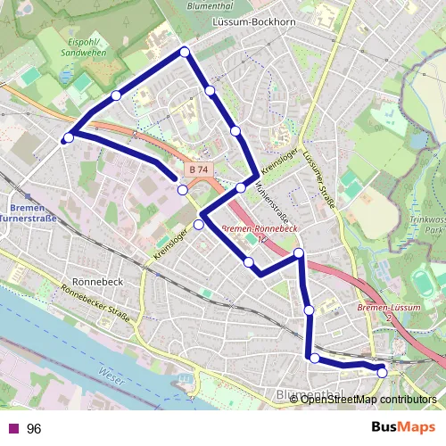 See why over 2 million users trust and consider busmaps.com as the best public transport website. busmaps gives you Bremen Buses suggested routes, real-time bus tracker, line route maps in Bremen, and helps to find the closest 96 bus stops near you. No internet available? Download an offline PDF map and bus schedule for the 96 bus to take on your trip.